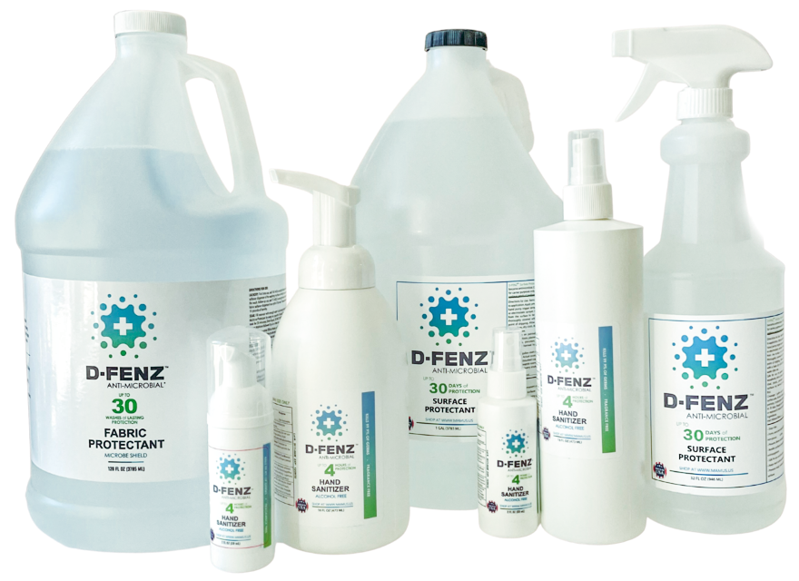 Unlike traditional disinfectants, D-FENZ™ stays in place long after you apply it. Stays active & in place for hours, days or weeks, product specific.